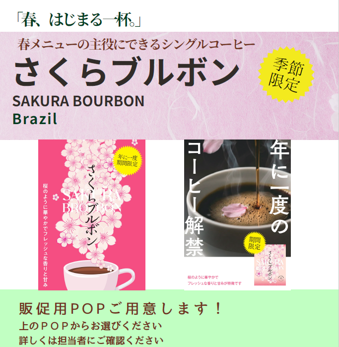 桜のように華やかで、フレッシュな香りとやさしい甘みが特徴の「さくらブルボン」は、まさにこの季節のためのコーヒーです。