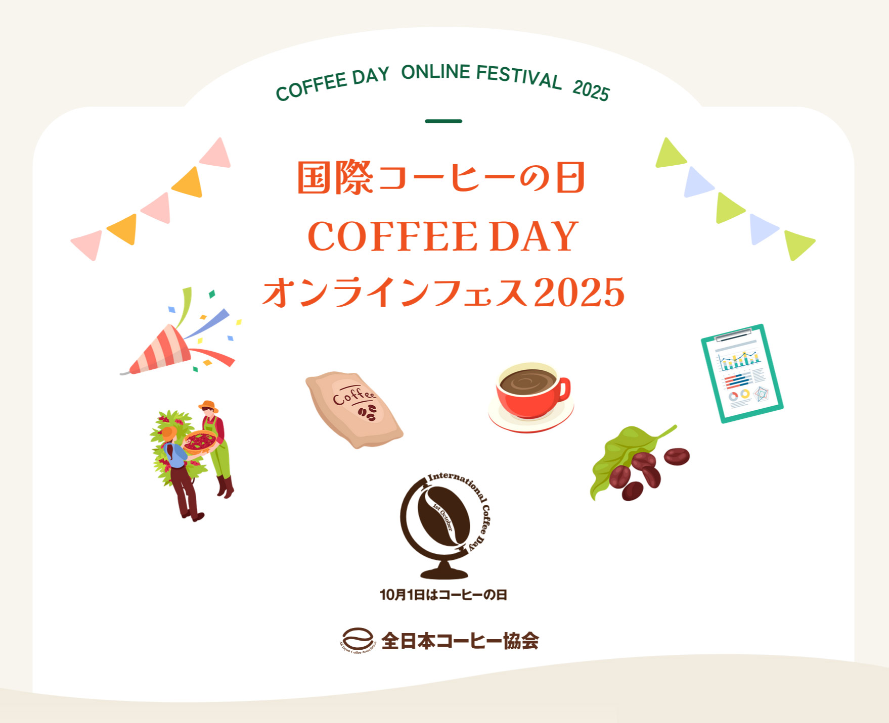2025年は「国際コーヒーの日」からの1ヶ月間を「コーヒー月間」とし、コーヒーをめぐる最新事情、コーヒーの魅力や楽しさをもっと知っていただきたい、あるいは皆さまと分かち合いたい、そんな思いをこめた動画を8本順次公開する「COFFEE DAY オンラインフェス2025」を開催します。